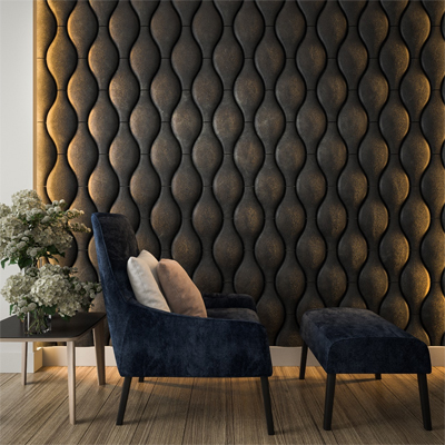 Many of you may not be familiar with this term as it’s an absolutely new approach in the industry of 3D panels. A few companies produce printography materials in the whole world. Actually, printography is the laminated version of 3D panels. Let’s view an example of our previous works to make it easy for you to understand and imagine. In the picture below you can see an example of printography with leather texture and that’s right what makes the decoration of the walls look original. Having these kinds of walls in the room makes them a great center of composition.