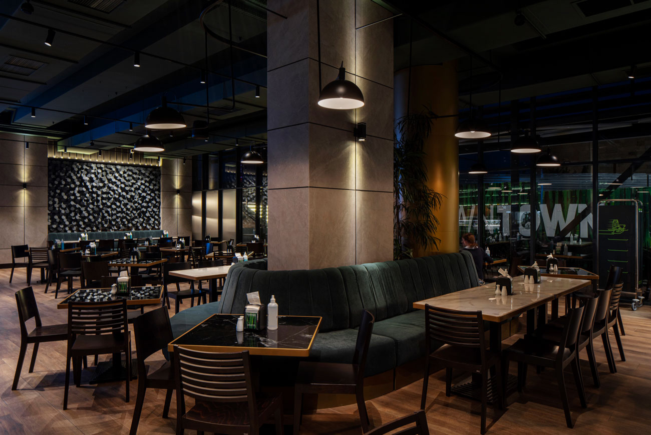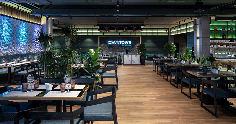 Downtown is a multifunctional event center. During the day, it is a cafeteria for the employees, a restaurant and a club in the evenings, and a family pastime on weekends. Let alone the fact that it offers a cycle of events from conferences to coffee breaks for businesses.