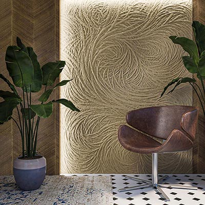 Idea 2: Bas-relief walls are one more daring loft design idea for decorating a large wall in the living- room in Loft style. Bas-reliefs can be painted with various, bright and risky colours. Here the wall sculpture looks like storm which blows through leaves. Depending on lighting system, painted colours every day you can meet different image.